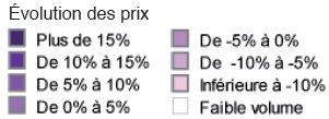 The following map shows the average percentage change in prices within each department up to June 2010.
